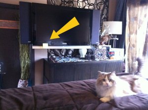 I stuck it on the TV just below the screen, and I got back in bed. I vaguely remember giving John a reason for doing this, but I was operating on instinct… I didn’t really have a reason, other than it just seemed like it would be helpful.