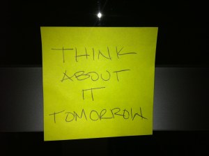 3 responses to “Think about it tomorrow.